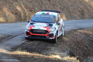ES14 : FONTANA, LA SURPRISE DU CHEF. Au volant d’une Ford Fiesta Rally3, Matteo Fontana était dans une forme olympique ce dimanche matin entre le col de Braus et la Cabanette. Il s’adjuge la victoire de spéciale, la première d’une Rally3 (2 roues motrices) dans
