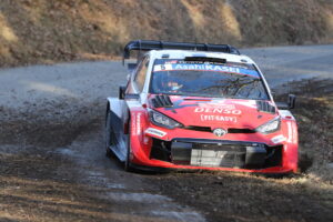 Dès son premier passage, Takamoto Katsuta, copiloté par Aaron Johnston, a réalisé le meilleur chrono de ce Shakedown. L’équipage de la Toyota n°18 a devancé ses coéquipiers Sébastien Ogier / Vincent Landais et Oliver Solberg / Elliott Edmondson d’un peu plus d’une seconde. L’un des équipages favoris à la victoire finale, Elfyn Evans / Scott Martin, se classe 4e, devant Sami Pajari / Marko Salminen, qui complète un top 5 100% Toyota. Suivent les trois Ford et, plus loin, les Hyundai qui ont tenté de rouler en pneus clous. Adrien Fourmaux / Alexandre Coria et Thierry Neuville / Martijn Wydaeghe se classent respectivement 9e et 11 e des Rally1.