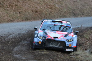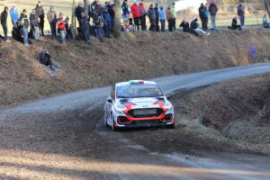 l’histoire du WRC. Trois Rally2 le suivent au classement de cette spéciale : le Français Yohan Rossel (Lancia Ypsilon), le Belge Cédric Cherain (Skodia Fabia RS) et l’Estonien Romet Jürgenson (Ford Fiesta). 22.7 secondes derrière Fontana, Elfyn Evans (Toyota) signe le cinquième temps, départagé au centième de seconde avec Adrien Fourmaux (Hyundai), très efficace lui aussi sur cette route totalement enneigée et glacée qui ouvrait la dernière matinée du rallye.