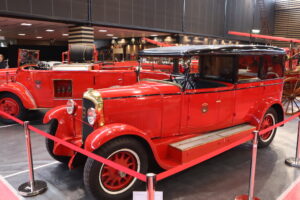 Le musée des sapeurs-pompiers de Lyon-Rhône et la Fondation Berlier propose un rare plateau de vingt véhicules. Des engins particulièrement remarquables comme ce Camion -Citerne feux de forêts, Sinpar Castor CCFM 1965, un fourgon mixte GAK 17 destiné aux feux urbains, l’emblématique ambulance Peugeot 203 de 1956 et le véritable légende de cette exposition, l’Autopompe Vermorel de 1910 de l’industriel et sénateur du Rhône qui fonda en 1893 la société de matériel agricole Vermorel avant de se lancer dans l’automobile.