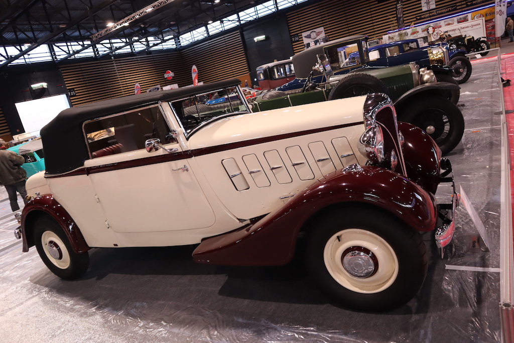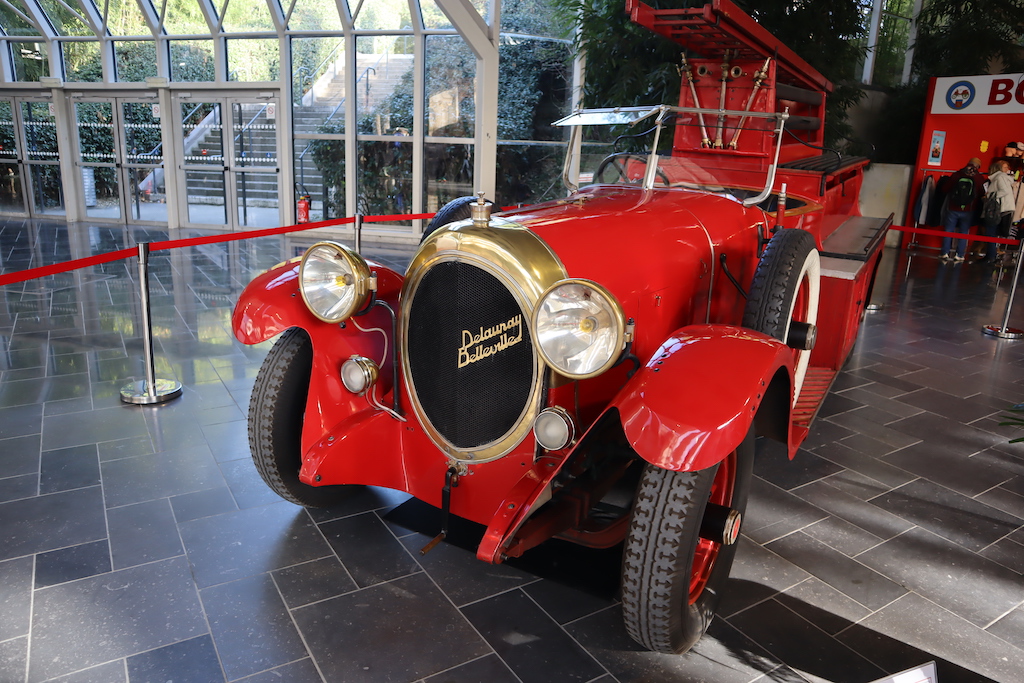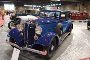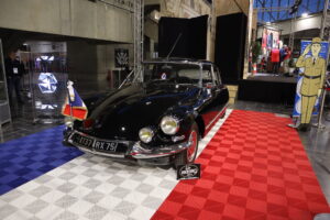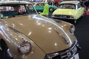 L’entrée du 46e salon Epoqu’Auto nous accueille place des Lumières avec une rare Delaunay-Belleville MF6 de 1023 qui illustre l’affiche du salon. On découvre également la Citroën DS 21 Pallas, voiture personnelle de Général De Gaulle de 1965 à 1967. Pour répondre aux besoins du Chef de l’Etat, elle fût équipée de pare-soleil arrière, porte-documents, porte-cocardes sur le tableau de bord et porte-fanions intégrés au pare-chocs avant.