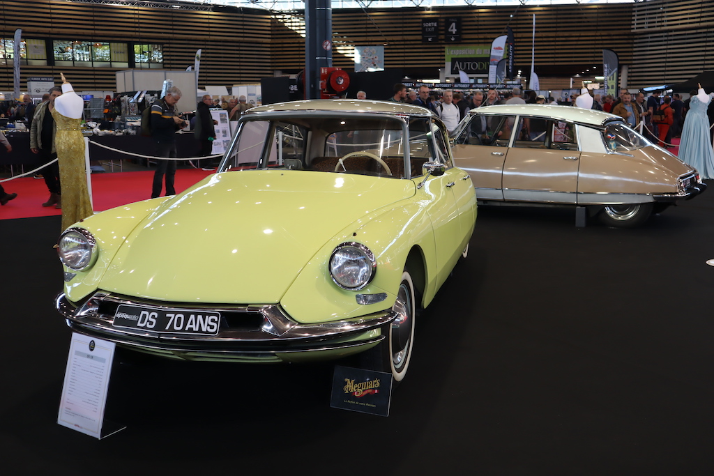 Parmi les plateaux admirés par le public, on peut citer l’exposition consacrée aux 70 ans de Citroën DS qui réunit 11 voitures, correspondant aux trois grandes époques du modèle, premier nez, deuxième nez, et troisième nez. La DS, tout en conservant sa ligne gracieuse de 1055 à 1975, se déclinera en arborant trois faces différentes. Plusieurs modèles sont présentés dans des teintes aussi rares qu’audacieuses : jaune jonquille, bleu nuage, vert Jura ou orange capucine. Cette exposition associe le design automobile à la haute couture, avec la participation d’un grand nom de la création lyonnaise, Nicolas Fafiotte, couturier reconnu qui met ses robes exceptionnelles, au service de l’élégance française.
