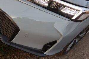 Oublié les lignes anguleuses et les formes agressives, le nouveau design de la Civic bénéficie de calandres supérieure et inférieure redessinées, plus affirmées, rehaussées d’une finition noir brillant sur la version Advance. Le pare-chocs avant sculpté adopte un nouveau spoiler inférieur peint dans la couleur de la carrosserie. Cette évolution confère à cette nouvelle Civic e:HEV une allure plus fluide et plus sportive. Les blocs optiques