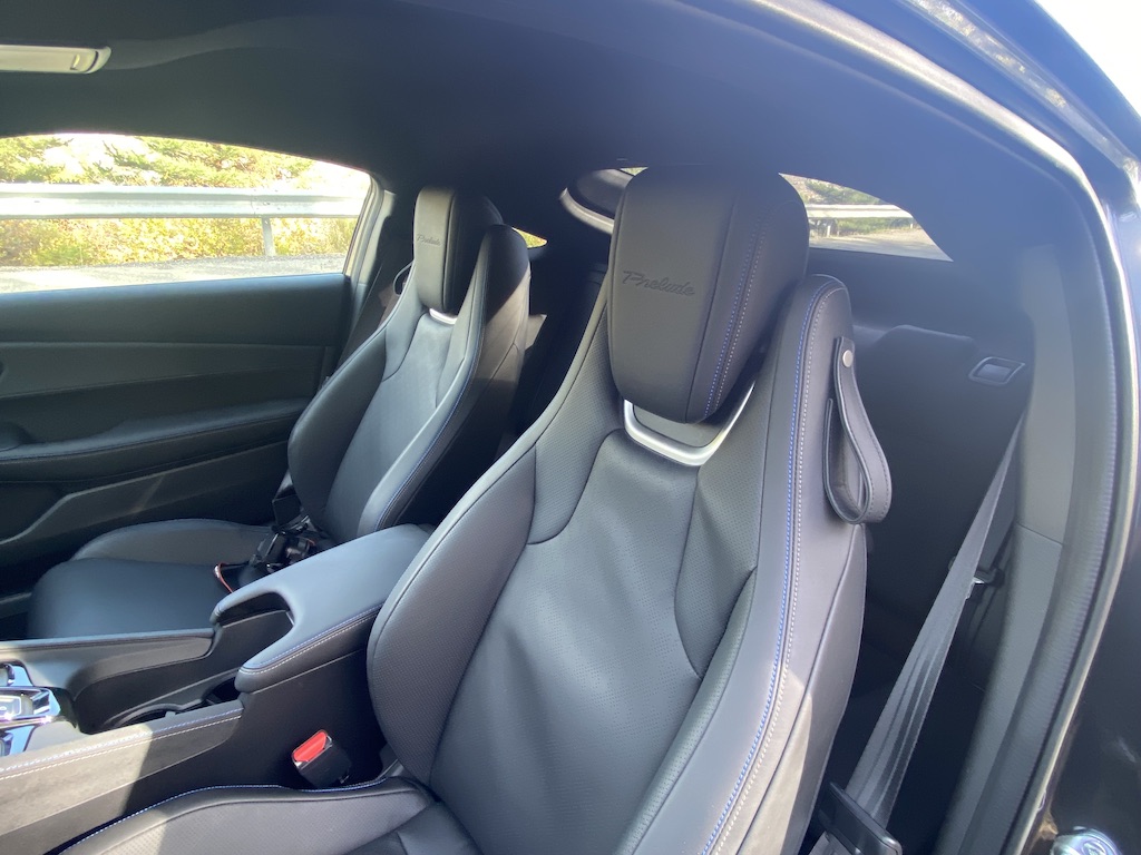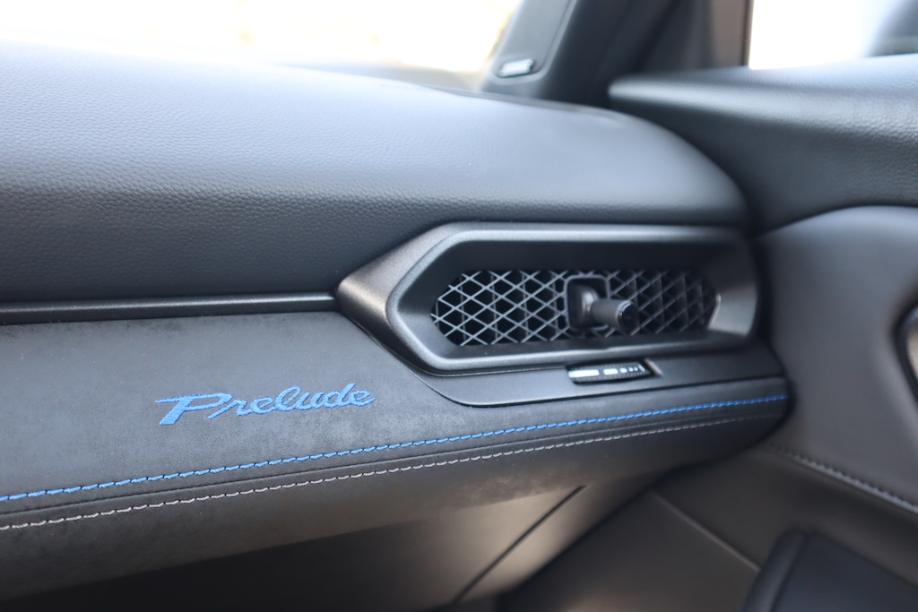 finition, citons l’inscription Prelude soigneusement brodée sur le tableau de bord et le tissu à motif pied-de-poule disponible pour la garniture de siège, clin d’œil ludique à la Prelude originale de 1978. Pour l’ Infodivertissement, la nouvelle Prelude dispose d’ un écran tactile de neuf pouces, dommage que cet écran soit mal intégré à la planche de bord, ce qui nuit au design de l’ensemble. Apple CarPlay (sans fil) et Android Auto sont tous deux disponibles de série, assurent une connectivité transparente avec les smartphones.