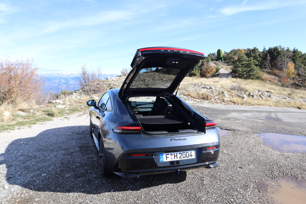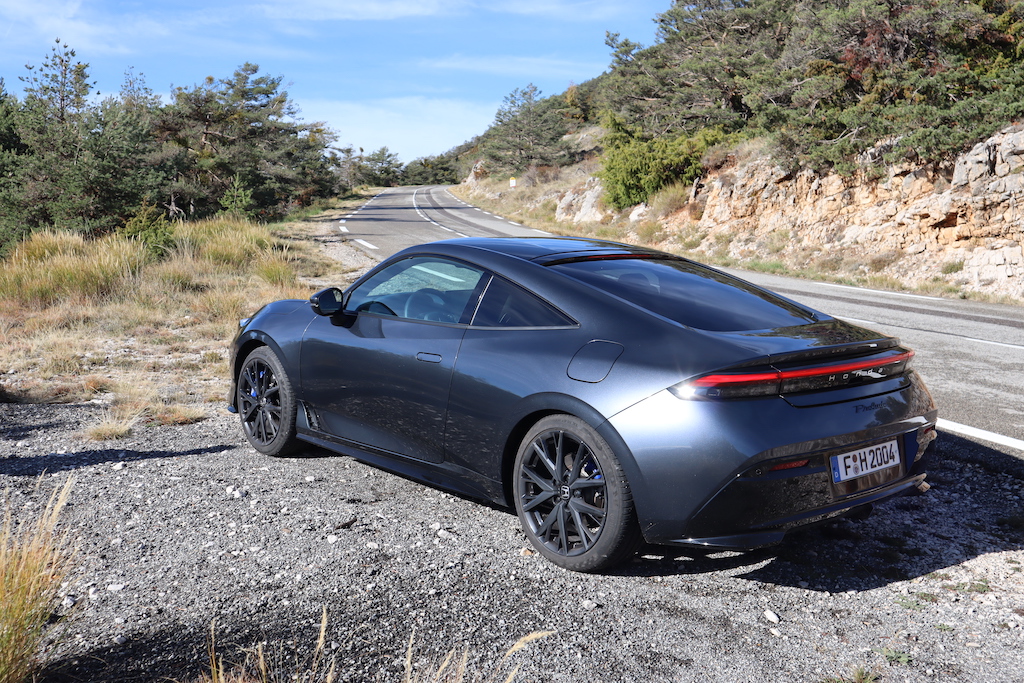 Nous avons pris les commandes de la nouvelle Pélude dans l’arrière-pays niçois sur des routes exigeantes idéales pour apprécier les qualités dynamiques de notre Prelude. Dès les premiers kilomètres, le ressenti du comportement de la Prelude est bluffant. Sur notre parcours très accidenté, on note une efficacité parfaite du châssis avec un train avant précis dans les courbes serrées, mais également sur les secteurs rapides et bosselés. Les suspensions avant jouent un rôle essentiel grâce à une géométrie optimisée qui limitent le couple de braquage et permettent une trajectoire précise, en particulier en sortie de virage lorsque le véhicule est soumis à une charge latérale. La nouvelle Prelude est équipée d’un système Brembo sur mesure qui utilise un servofrein