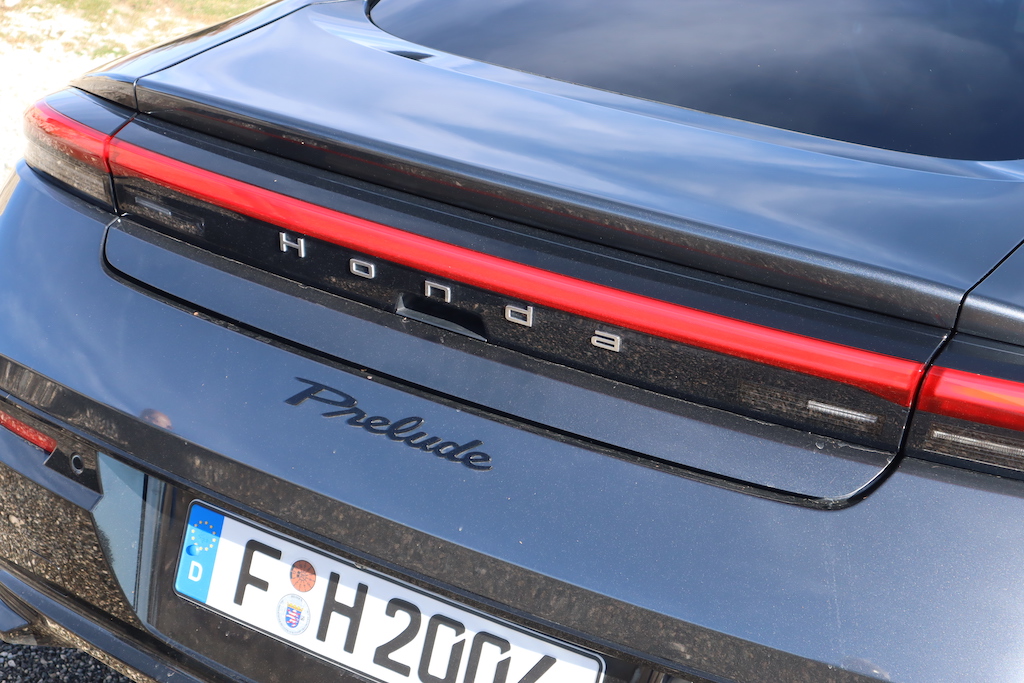 Vue de profil, la Prelude propose une ligne fuyante et fluide. Les flancs sont sculptés et comportent des ouïes d’aération parfaitement intégrées derrière les roues avant afin d’optimiser les flux d’air sur le véhicule. On retrouve également ce design simple et épuré dans les poignées de porte affleurantes et rétroéclairées. Le toit comporte un panneau à « double bulle » qui évoque les véhicules hautes performances classiques. L’ antenne radio est intégrée à la vitre arrière pour accentuer l’impression de fluidité de la Prelude. L’éclairage LED à l’avant et à l’arrière met en lumière la largeur, le centre de gravité bas et le style dynamique de la nouvelle Prelude. L’arrière est rehaussé par une double bande rouge distinctive visible de jour.
