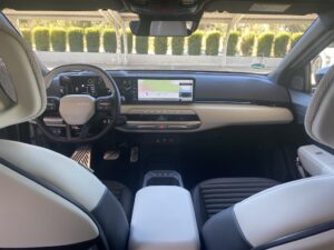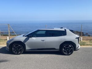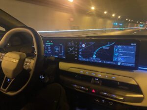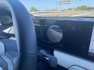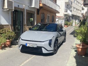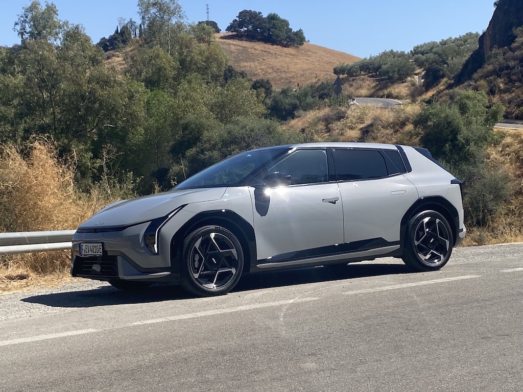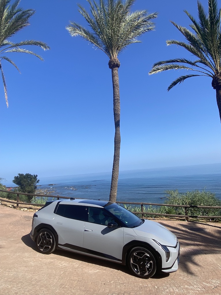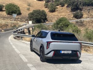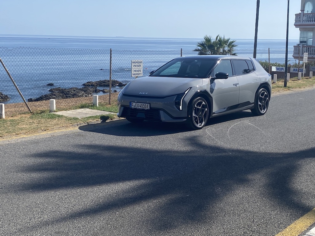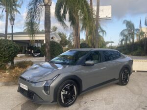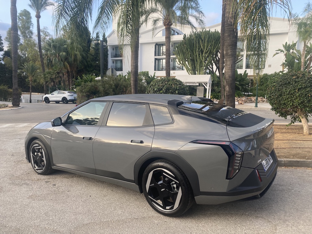 Nous avons pris le volant de Kia EV4 sur les routes très variées au sud de l’Espagne entre Malaga et Marbella. Nous démarrons notre essai par une portion d’autoroute idéale pour se focaliser sur le régulateur de vitesse adaptatif, tout fonctionne correctement, le véhicule suit les indications routières, détection de panneaux, ralentissent et freinage anticipé. On sent que la technologie progresse à pas de géant sur ces fonctions. Nous poursuivons notre parcours routier plus varié avec des portions sinueuses et rapides. Notre Kia EV4 a un comportement efficace , la tenue de route est sécurisante même lorsque nous haussons notre rythme de conduite. Le train avant est précis, et les suspensions avant à jambes de force MacPherson, qui nous semblaient un peu souples jouent parfaitement leur rôle, associées aux amortisseurs à fréquence sélective de troisième génération (SFD3), pour assurer un confort agréable. Nous testons le système personnalisable i-Pedal 3.0 très efficace qui est proposé soit en mode permanent soit en position intermédiaire avec trois niveaux d’efficacité. Sur des portions plus bosselées, Kia EV4 réagit en souplesse, le châssis, offre des niveaux de bruits et vibrations réduit, il répond parfaitement aux exigences des suspensions qui épousent les imperfections de la route, pour le maintien d’un confort sans reproche. Globalement le comportement de Kia EV4 est homogène, l’agrément de conduite est bien réel. On peut voyager en toute sécurité dans une ambiance intérieure sereine.