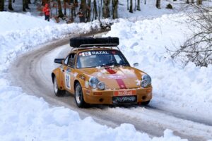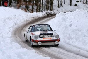 La troisième étape de classement emmène la caravane en direction des Barronies. La spéciale SR 11, Les Nonnières – Chichilianne surprend les concurrents avec de la glace et de la neige au sommet du col de la Menée ainsi que dans la descente. Mais c’est la spéciale SR2, le Château – la Bâtie-des-fonts qui fait le plus de dégâts. A partir du Col de Carabès, la route verglacée provoque de nombreuses sorties de route, sans gravité pour les équipages concernés. Parmi eux : les numéros 5, 30, 45, 72, 82, 134, 188, 219, 222 et 236. Dans la spéciale SR 13, Col de Chamauche – Saint-Nazaire-le-Désert, la route sale, encore abîmée par le passage, à certains endroits, de l’épreuve WRC deux semaines plus tôt, rend l’étape encore plus difficile. Cette 3e journée confirme la bonne dynamique de l’équipage Kashin / Kostyrko (Volkswagen Sirocco n° 102) qui prend la tête du 28e Rallye Monte-Carlo Historique. La lutte reste serrée pour la victoire finale, plusieurs concurrents : De Luca /Chol (Peugeot 104 n°109), Castelein / Deplancke ( Austin Mini Cooper S n° 146) ou Enz / Seeberger ( Lancia Fluvia 1,3 S n° 101) restent en embuscade.
