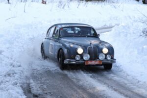 SR3. Puis, au départ de la SR5, l’Austin Healey 3000 MkIII n°29 de l’équipage Trevisan / Trevisan Fischer a rencontré un problème de transmission. Cette première journée revient aux concurrents partis en moyenne intermédiaire qui ont bénéficié de meilleurs conditions de route. C’est l’équipage n° 116, Campana Olivier/Campana Lydia Volswagen (Golf GTI 116) qui rejoint Valence en tête du Rallye, il devance Castelein Maxime/Delplancke Philip (Austin Cooper S n° 146) et Raisys Karolis/Meilunas/Ovidijus Carles Jaguar MKII n°106).